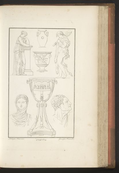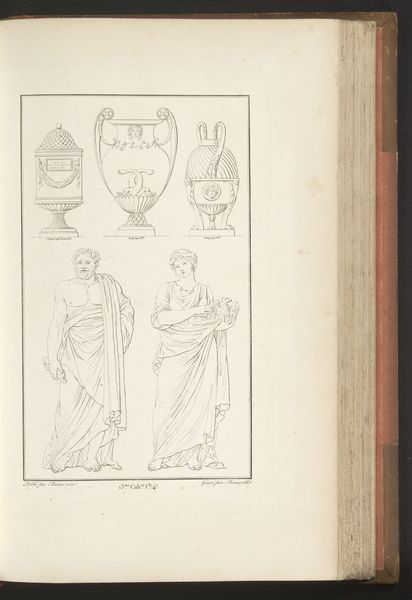 Cécile Beauvallet created this line drawing titled "Vazen en figuren". The composition is structured around a series of sketched figures and vases, each rendered with a fine, delicate line. These figures, evocative of classical forms, are intentionally devoid of color, emphasizing the purity of line and form. Beauvallet uses the interplay of positive and negative space to create a visual rhythm across the page. The forms depicted here—vases and figures—are historically loaded, often associated with narratives of heroism, mythology, and cultural identity. Beauvallet’s choice to present these forms in a sketch-like state raises questions about completion, representation, and the act of artistic creation itself. The artist is not merely replicating classical forms but is dissecting them, offering us a glimpse into the underlying structure of these archetypes. The unfinished quality invites a deconstruction of fixed meanings and values. It is a semiotic exercise where Beauvallet challenges us to see beyond the surface and question the very foundations upon which cultural symbols are built.