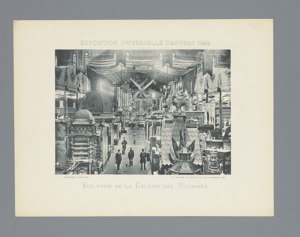 Curator: This photomontage by Charles Bernhoeft captures a bird’s-eye view of the Italian, Russian, and Austrian sections of the 1894 World's Fair in Antwerp. Editor: My first impression is the density of the image; it’s packed with stuff, almost overwhelming. You see these inflated silk pavilions juxtaposed with ornate ironwork, and a profusion of exhibited items that seem to shout for attention. Curator: Indeed! These world expositions were about nations showcasing their industrial and artistic achievements. The photomontage allows Bernhoeft to capture this incredible density in one image, a testament to progress, commerce, and national pride, although often laced with competitive anxieties between countries. Editor: I notice how photography’s reproducibility serves the Fair’s own promotional needs. It speaks to the distribution of knowledge, to progress via documentation… The juxtaposition of silk pavilions alongside iron demonstrates an intriguing materiality present within production at the turn of the century. Silk represents trade with the far east, while iron speaks to heavy industry in the west. Curator: Right, and these events also acted as key sites of colonial display. Nations were keen to showcase what they possessed from their colonies, framing non-Western production in ways that asserted the authority of empire. Bernhoeft, here, captured a sanitized perspective, of course. Editor: It's interesting to see that despite its staged character, it still serves as an archive of commodities. Photography, as a form of preservation, is used to catalogue the ambition of industry at a global level. You can feel a shift in this kind of medium, towards capturing scale in both industry and material production. Curator: I agree; in many ways, this singular image encapsulates an age, one rife with both ambition and complex tensions between tradition and modernity. Editor: Seeing it broken down in this way illuminates just how impactful material can be at telling history's stories. Thank you.
