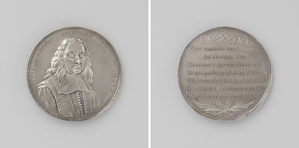This silver medal of Pieter Adriaansz. van der Werff, the mayor of Leiden during the siege, was made by Jan Smeltzing in the late 17th century. The medal commemorates the siege of Leiden in 1574, a key event in the Dutch Revolt against Spanish rule. The visual codes employed here elevate van der Werff to a heroic status. The portrait mimics the style of classical busts, associating him with Roman virtues of leadership and stoicism. The reverse side features an inscription praising van der Werff's courage and steadfastness, reinforcing the medal's propagandistic function. As an art historian, I'm interested in how institutions like the mint shaped historical narratives. Medals like these were powerful tools for constructing and disseminating national myths. Examining archival documents, such as city records and guild papers, can reveal more about the social and political context in which these medals were produced and circulated.