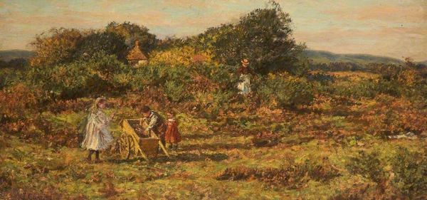 Pasquale Celommi's painting 'Autumn' offers a vision of rural life, composed with warm colours and gentle light that evoke a sense of nostalgia. The painting's structure hinges on its balance. The figures in the foreground, rendered with soft brushstrokes, lead the eye into the distance. There, the landscape fades into a misty horizon. This arrangement creates depth and evokes a feeling of expansive space. The figures, rendered with classical realism, are positioned to guide the viewer's gaze, while the diffused light unifies the composition. Celommi’s choice of colour and light is also significant. The muted tones of the landscape contrast with the slightly brighter figures, drawing attention to the human presence within nature. These formal elements suggest a vision of harmony between humanity and the natural world. It’s a scene where the act of observation shapes our understanding and appreciation.