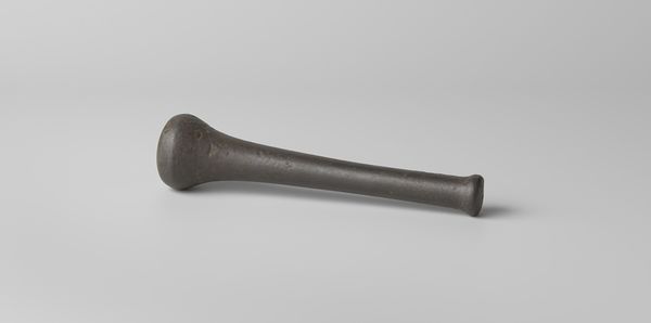 Editor: This is a cast-iron stamper from 1553, by Jan van den Ghein II. The simple form of the metal tool makes me think about function over artistic expression. How would you describe the aesthetic here? Curator: The aesthetic, as you say, emphasizes form dictated by function. Observe the symmetry: two identical bulbous ends, mirroring each other around a cylindrical core. It exemplifies balance and repetition, formal devices for visual appeal but principally serving to evenly distribute force during its use. Editor: So, its beauty comes from how well its shape fulfills its purpose? The curves are so smooth. Curator: Precisely. The rounded terminals ensure the force is exerted on an exact point. Notice how light interacts with its burnished surface; the subtle gradations highlight its three-dimensional form. Consider also the material itself: the density of cast iron conveys stability and permanence. How do the formal elements communicate its physical properties to you? Editor: I see. The metallic sheen and the even weight across the shape communicate solidity, and suggest strength. It feels unyielding and timeless due to its geometry. Curator: Exactly. The emphasis is less on overt decoration and more on revealing the inherent properties of the material through streamlined forms. It’s the articulation of these elements—the relationship between form and function, material and light—that truly defines its artistic value. Editor: So I should be paying attention to line and shape as elements, not symbols. Curator: Indeed, to analyze the language of art, its grammar, not just speculate on cultural allusions or iconographic programs. Focus on that conversation first. Editor: Okay, seeing it this way brings the object into focus. Now, I notice details in shape and surface more readily! Thanks for helping me appreciate this piece better!