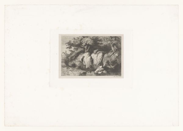 Editor: Here we have an anonymous photograph from sometime between 1850 and 1880, titled "Grotto in the Parc des Buttes-Chaumont in Paris." It’s fascinating. The park looks so carefully constructed, even artificial, in a way that clashes with its natural appearance. How do you interpret this image? Curator: That artificiality is key. These carefully designed landscapes were often presented as natural escapes, yet they reflected specific social and political ideologies. Who had access to these spaces, and whose labor constructed them? Editor: So, this idyllic image could be masking something? Curator: Absolutely. Consider the rapid urbanization of Paris during this period. Parks like Buttes-Chaumont were conceived as controlled environments, offering a carefully curated vision of nature to the increasingly dense urban population. Think about who benefited most from that curated experience, and what that might say about class and power dynamics. Editor: Interesting! It seems like a form of social engineering, almost. Curator: Precisely! It speaks to the era's attempts to mold society, to create spaces that reinforced specific values. The grotto itself, a fabricated "natural" wonder, emphasizes this control and manufactured aesthetic. How does that contrast with our contemporary understanding of natural landscapes? Editor: Now I see the photograph isn't just about the park's beauty. It’s a document that opens a window into the social and political landscape of the time, the artificiality speaking to larger inequalities. Curator: Exactly. And photography, as a medium, was complicit in creating and circulating these idealized images. Consider its role in shaping public perception and reinforcing certain social norms. Editor: Thank you! I now see this serene image through an entirely new lens, a reminder that even "natural" settings can be loaded with meaning. Curator: Indeed, always question the narrative being presented. It opens up richer, more complex readings of art and its relation to society.