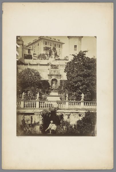 Editor: Here we have "Gezicht op de Torre du la Vela in het Alhambra te Granada, Spanje," a photograph taken around 1906 by C Maufsaise. I find it interesting how the light seems almost diffused, softening the imposing architecture. What aspects of this image stand out to you? Curator: Considering the material context, let’s think about photography at the turn of the century. The accessibility of the medium was increasing, but it still involved specialized equipment and processes. This image captures not just a scene, but the labour involved in producing a 'view' – a commodity consumed by tourists and reinforcing orientalist perspectives. The photograph itself becomes an object of trade, shaped by economic forces and colonial gazes. Editor: That’s a different perspective. I hadn't considered the economic forces involved. Is that why the architecture seems almost staged, to cater to those expectations? Curator: Precisely! Consider the composition. The photographer is positioning the Alhambra, literally translating to "the red one," in a specific way. The 'exotic' is framed for consumption, which raises questions about power, representation, and who benefits from these depictions. What processes were used to disseminate such views and which audiences consumed them, especially since they were likely not of Spanish origin? Editor: So you're saying the photograph is more than just a picture, but an artifact of its time, revealing production and dissemination of cultural biases? Curator: Absolutely. It prompts us to consider the complex relationship between artistic production, social context, and the materiality of the photograph itself. How its value is derived from, and perpetuated, this dynamic. Editor: I now realize how a seemingly simple photograph is a lens through which to view complex societal structures. Curator: Indeed. Reflecting upon the artwork in question inspires the viewers to think of art not in isolation, but of its time and context.