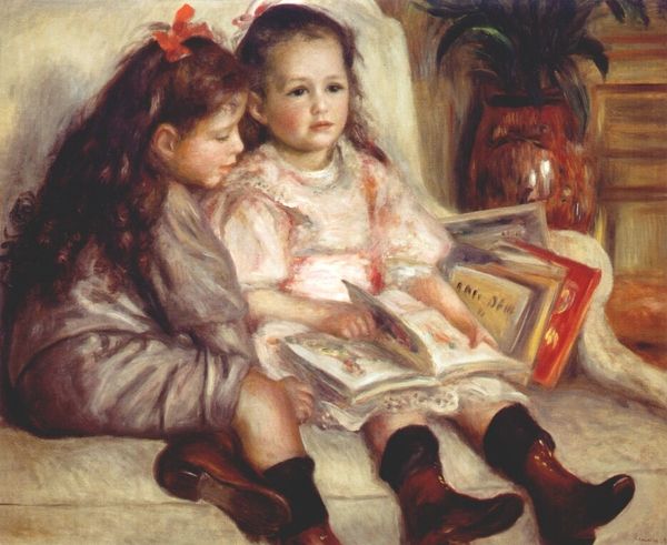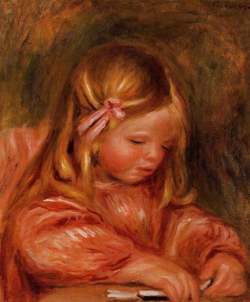 Pierre-Auguste Renoir made Coco Reading with oil on canvas, though the exact date remains unknown. There’s something so tactile about the way Renoir built this image. The brushstrokes feel immediate, like he’s trying to capture a fleeting moment. Looking at the face of the girl, you can see how the paint is layered, almost like he’s sculpting with color. The texture isn’t smooth or blended; it's a bit rough, which makes the whole piece feel alive and dynamic. I love how the red in the background seems to vibrate, pushing the figure forward and creating this warm, enveloping atmosphere. The hair is just a flurry of strokes, capturing the light in such a lively way, like quick, expressive marks that define the form. There's a looseness here that reminds me of some of Manet’s later works, that same embrace of imperfection. For me, it shows how art isn’t about precision but about feeling and gesture. It's about capturing a moment that’s constantly shifting and changing.