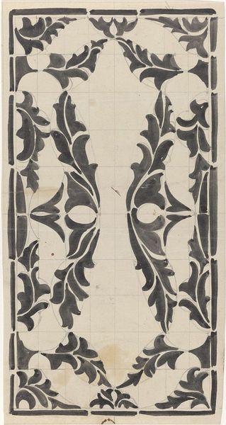 Editor: This is “Decoratief ontwerp met vissen” - or “Decorative design with fish” - a drawing in ink on paper, potentially from 1942, by Carel Adolph Lion Cachet. The composition has a rather symmetrical and balanced quality. It's striking how the fishes and shell motifs create a sort of all-over pattern. How do you interpret this work? Curator: It’s fascinating how Cachet uses these naturalistic motifs—the fish and shells—within a highly structured, geometric framework. Given the likely date of 1942, it's hard not to see this work through the lens of World War II and the Nazi occupation of the Netherlands. Do you notice how the repetitive, almost militaristic, arrangement of these traditionally free-flowing organic forms creates a sense of constraint? Editor: That’s an interesting perspective. I hadn't considered the historical context. I was focusing more on the Art Nouveau aspects, the flowing lines… But I see what you mean. Curator: Consider that decorative arts during wartime often served purposes beyond mere aesthetics. In a time of immense social upheaval and oppression, artists frequently embed coded messages, acts of resistance, and symbolic hope within their work. Does knowing this influence your understanding of the image? Editor: It does! I can see the potential tension between the beauty of the individual motifs and the rigid structure they’re forced into. Maybe the artist is hinting at a struggle for freedom, a yearning for the natural world, in a time of confinement. Curator: Exactly! And thinking about the socio-political role of art invites these critical perspectives into conversation with traditional art-historical readings of the period, hopefully creating new forms of engagement with our collective histories. Editor: I now appreciate the work’s layers of meaning. It’s a beautiful decorative piece, yes, but it’s also a reflection of the artist’s lived experience and response to the climate of oppression. Curator: Absolutely. Seeing art as enmeshed in its cultural moment, rather than separate from it, allows us to interpret it as a historical text, and, I think, ultimately brings us closer to a shared sense of understanding.