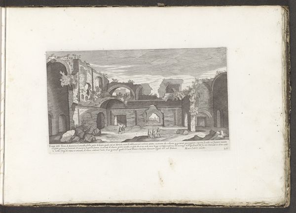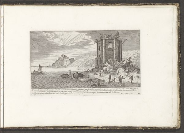 This print of ruins at Misenum was made using engraving, a meticulous intaglio process. The artist would have used a tool called a burin to carve lines directly into a metal plate, likely copper. Look closely, and you can see how the varying depths and densities of these lines create a range of tones and textures. The image depicts not only the stones of the ruins themselves, but the human activity that surrounds them. You can see that the engraver paid careful attention to details of the clothing, the musculature of the animals, and the play of light across the scene. This involved many hours of careful labor. The print would have been produced in multiples. It is a testament to the engraver's skill, requiring a deep understanding of materials and processes. Appreciating the artistry of such a print means recognizing the technical skill involved, and the many hours of labor required. This challenges the traditional hierarchy between art and craft, elevating the status of skilled artisans and their contributions to visual culture.
