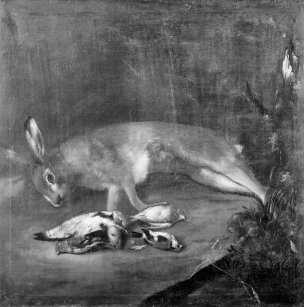 Editor: So, here we have "The Spoils of the Chase," painted with oil paints between 1648 and 1651 by Joannes Fijt. The painting presents a rather stark image of dead animals. What stands out to you about this piece? Curator: The painting is indeed a still life, but through a materialist lens, it’s less about death and more about consumption. Consider the resources expended: the land required for hunting, the labor of the hunters, the production of hunting tools, and even the oil paint itself. The texture of the fur and feathers almost screams to be felt; the labor implied by the making is intense. Don’t you find yourself pondering the socioeconomic status embedded here? Editor: I suppose I hadn’t considered that angle. The detail certainly draws the eye and does invite one to touch, to truly inspect the textures, to see what those objects were like at that time. Curator: Exactly. These lavish depictions became popular during periods of economic growth and mercantile power. Art like this visualizes status. One could also think about this style as an example of conspicuous consumption, wouldn’t you agree? Editor: Certainly! It is visually flaunting an excess of product that resulted from some kind of human capital and hard labor, yes. The work definitely shows how one's lifestyle relates to their interaction with material reality, as well as nature, its resources, and labor. Curator: Right, consider how the Dutch Golden Age used paintings of banquets with half-eaten pies and meat. These served as morality reminders. Do you believe this one may function similarly or, perhaps, in a more celebratory manner? Editor: That is definitely something to further consider as well, especially with paintings that try to reflect some kind of material or spiritual meaning. Thank you for offering that lens to observe. Curator: My pleasure! Reflecting on art with focus on means and relations of production gives us valuable social understanding.