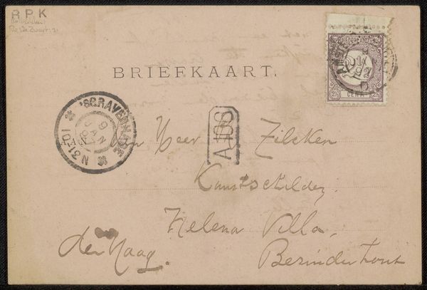 Editor: Here we have a peek into art history: a postcard titled "Briefkaart aan Leo Gestel," created sometime between 1902 and 1922, an ink drawing on paper. Looking at this, I immediately think of intimate communication, personal histories intertwined with the art world. What draws your attention when you look at this piece? Curator: Ah, what I wouldn’t give to intercept more artistic correspondence! Beyond the literal message, which remains somewhat elusive, I see layers – layers of friendship, artistic dialogue, the simple act of connection across distance. Do you notice how the handwritten text almost becomes part of the composition itself? Like abstract marks dancing on the paper. It invites us to imagine the personalities involved and the nature of their exchange, wouldn't you agree? Editor: Absolutely! The handwriting definitely feels like an extension of someone’s personality. It's like a visual signature, very telling in a way a typed message wouldn't be. So, even without knowing exactly what it says, we get a sense of character. Do you think that was intentional, a deliberate artistic choice, or just the nature of communication at that time? Curator: I lean towards the latter, don't you think? Though artists, especially of the post-impressionist bent like Bram Geers here, were acutely aware of line, form, and texture – their relationship to emotional expression. So, even if unconsciously, I suspect he imbued the message itself with a kind of expressive flair. Think about how differently we curate our emails now compared to handwritten letters. Something’s gained and lost with each choice of medium, right? Editor: You're right. This makes me think about how much intention is in this medium. This definitely encourages a deeper look. Thanks for your time. Curator: It's my pleasure, this has truly made me yearn to learn more about their discourse; perhaps the contents would be enlightening!