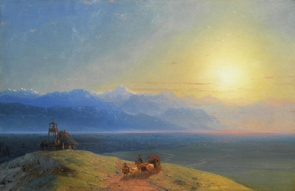 Editor: So, this is Johan Christian Dahl’s oil painting, “The ruined Church at Avaldsnes at Karmøy,” created around 1820. There’s this incredible, brooding atmosphere… the imposing clouds, the melancholic ruins. It makes you wonder about time and history, I guess. What catches your eye most about this piece? Curator: Immediately, the composition speaks volumes. The ruined church isn't just a pretty backdrop; it's a symbol. Think about the sociopolitical context of the time. The rise of nationalism often looked to romanticized versions of the past for legitimacy and identity. Do you see how the dramatic lighting and the decay work to evoke a particular feeling about the Norwegian past? Editor: Yes, the church feels deliberately placed, almost… staged? But, like, what history are we supposed to see here? Curator: Exactly! Consider how ruins like these became potent symbols in the Romantic era. Dahl is deliberately highlighting a narrative about Norway's heritage. It connects the landscape with historical memory and the power structures embedded within it. Do you think this idealized ruin aligns perfectly with reality, or could it also be pushing a nationalistic agenda? Editor: I see. The ruin isn't just *there*. It's there to communicate a specific version of the past that benefits a particular narrative, maybe one about Norwegian strength and resilience… Even if the reality of those pasts might have been totally different! I suppose paintings like this really do create our idea of ‘history’, huh? Curator: Precisely. Dahl’s painting reveals how art functions as a social tool. Reflecting upon its cultural impact enriches its appreciation. Editor: That’s an eye-opening angle, thank you for making it clearer!