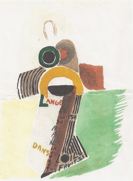 Curator: At first glance, there is a sternness to this image – the high contrast, sharp lines, and almost symmetrical design seem to portray something rigid and formal. Editor: This is an "Untitled" drawing created in 1996 by Wendy Lehman. Created using pencil, it blends elements of caricature and abstraction in its composition. But the way it engages with those tropes departs from the trends of its era in ways worth exploring. Curator: Yes, the abstraction feels pointed rather than playful. This feels almost like a deliberate un-fleshing, taking something that might be perceived as powerful – say, a political figure or executive – and draining away all humanizing qualities to expose their geometric essence. Editor: Absolutely. I think what's compelling is the visual language it adopts. The stark geometric shapes and severe verticality create a peculiar psychological landscape. The cartoonish quality reminds me of a time when public figures were mocked and scrutinized on newspaper stands. I mean, you have these strong colors but no face, really, which says a lot. The horizontal bars cutting across suggest confinement, a stripping away of autonomy. The caricature serves as critique. Curator: Precisely! The symbolism carries such weight here. The recurring lines evoke a sense of order – almost forced conformity, don't you think? And despite the title remaining deliberately anonymous, the figure portrayed is unmistakably…a figure. An authority figure almost certainly stripped down to some base elements. Perhaps its very lack of a knowable identity becomes the artwork's most potent commentary? Editor: And don't overlook the social aspect; there were significant shifts in media around 1996 as people engaged in digital forums to address institutional ills and voice criticism – Lehman appears to tap into these rising undercurrents to offer us a means for contemplating figures of influence, how they operate, and how readily they may also be disassembled to lay bare their constituent forms. Curator: Looking closer at this unnamed artwork certainly exposes greater depths of perception. Editor: Indeed, reminding us that art often asks us not just to see but to decode.