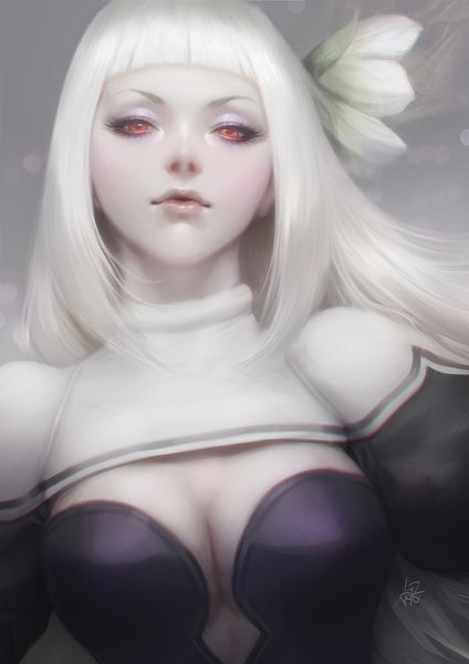 Curator: Here we have a digital portrait titled "Edea" by Stanley "Artgerm" Lau. What strikes you first? Editor: The coolness. Both literally, with that icy palette, and figuratively, in her knowing smirk. The values are really interesting; everything's rendered with a silky softness. Almost feels like polished CGI. Curator: I love that observation. It has that hyper-real quality characteristic of Artgerm's digital paintings, doesn’t it? Looking closer, the detail is really in the rendering of the textures: the wisps of hair, the subtle highlights on the metal gauntlet. It feels painstakingly built. Editor: Right, but how much of that perceived texture is actual simulated surface roughness and how much is an aesthetic decision that nods towards texture? Think of the labor, too. One digital artist producing images meant for wide consumption, circulating primarily in digital spaces. The act of digital creation also becomes commodified. Curator: Yes! And isn't that an interesting point when thinking about "portraiture" – historically a record of power and status achieved via patronage and here a hypermodern depiction accessible to, in theory, anyone. Editor: Well, in practice, access depends on digital literacy, and access to the technology in the first place. It's a portrait designed to be circulated, commented on, and easily copied. What happens to the notion of the original work? Curator: Perhaps "Edea" represents not an individual but the ideal of one. And perhaps that speaks to digital artwork, that is not made in some sort of glorious isolation, but in a community of users who see, who comment and re-imagine and remake every portrait into multiple versions. Editor: It certainly presents fascinating tensions between individual expression and collective consumption. And also questions around authenticity, skill and work in a digital world. Curator: For me, "Edea" becomes a reminder of just how intertwined art and technology can be – and that images might just exist for a moment. Editor: It’s something to think about isn't it, as our perception of what we are seeing, and its connection to a bigger industry continues to evolve.