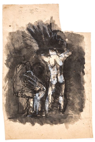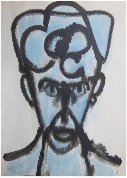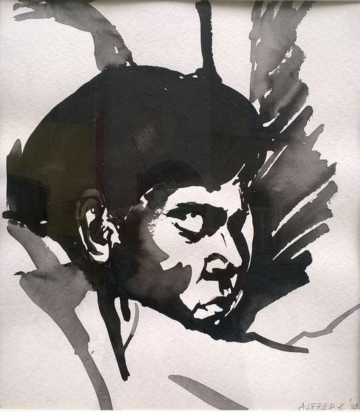 Alfred Freddy Krupa made this ‘Self-portrait or the Gaelic Viking’ with pen and ink, I’m guessing, at some point recently. It’s all about process here, you can see it in every stroke. The marks are so immediate, so un-fussy. Thick and thin, transparent and opaque, black, white, and beige, all working together. I love how the paint looks scrubbed on, especially around the face, like he’s trying to erase himself, or maybe just find himself in the mess. Look at the lines on his neck, they’re so raw and direct, totally unconcerned with being pretty. The way he’s built up the shadow on one side of his face is just great. It reminds me a bit of Philip Guston’s later stuff, the way he embraced awkwardness and imperfection. It's like both artists are saying, "Here I am, warts and all." Art is like this ongoing conversation, right? Each artist riffing on what came before, trying to figure something out about themselves, and the world, in the process.