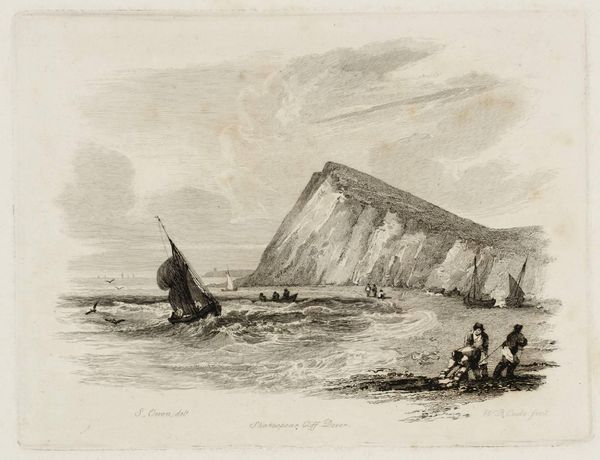 Editor: This watercolor is titled "View of Freshwater Bay, Isle of Wight" by Edward Dayes. It's got such a tranquil, almost melancholic feel. What can you tell me about how this image was viewed at the time it was made? Curator: Certainly. Dayes was working within a tradition of topographical art. These images were often commissioned as records, but also shaped perceptions of landscape. Did such images encourage tourism, perhaps, influencing the economic and social development of these coastal areas? Editor: So it's not just a pretty picture, it also shaped the way people interacted with that landscape! I hadn't thought of it that way. Curator: Exactly! The politics of imagery are always present. It's fascinating to consider the agency of these images. Editor: This has really changed my perspective on landscape art. I'll never look at a pretty view the same way again!