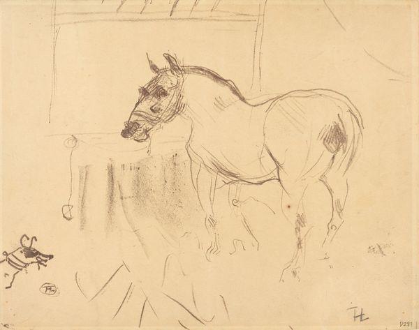 Curator: Welcome. Here we have Johan Thomas Lundbye's drawing, "Hest, der standser op", or "Horse Stopping," completed in 1833. Editor: Well, that horse seems awfully startled! It's captured in this sort of frozen moment, all delicate pencil lines and sudden halt. Is it me, or does it almost feel… ghostly? Curator: That ethereal quality might be from the medium, a light pencil on paper. Lundbye was part of the Danish Golden Age, deeply invested in portraying the Danish landscape and, perhaps, a sense of national identity through its animals. Drawings like this were often studies. Editor: Studies, huh? To me, it speaks more of the uncanny. It reminds me of those fleeting moments when animals seem to be perceiving something we humans are blind to. There's almost a fable quality to it, the simplicity really amplifies the raw energy. Curator: Fascinating. Given the socio-political climate of Denmark in the 1830s, the horse could represent a national symbol, a potent force harnessed—or in this case, momentarily halting—waiting for direction. The sketch becomes about control and national identity in a period of rising nationalism. Editor: Or, maybe the horse just saw a really big spider. I'm only kidding. I see the layers you're peeling back, I really do. The sketch quality makes it accessible, like peeking into the artist's notebook and glimpsing a raw moment of surprise or apprehension. Curator: I find the realism notable, despite its seeming simplicity. He is really capturing movement. The slight tension in the leg about to hit the ground... you feel the potential energy. This contributes to understanding the cultural value that this representation could provide. Editor: So, beyond national symbolism, what I am left with is a sense of contained power—a living being interrupted, mid-stride. Curator: Exactly. This is far more than simply a drawing of a horse. It offers insights into cultural values, the artist's vision, and perhaps Denmark's perception of itself during this period. Editor: Well, between national identity and phantom arachnids, I'll certainly never look at a horse sketch quite the same way again. Thanks for widening the view!