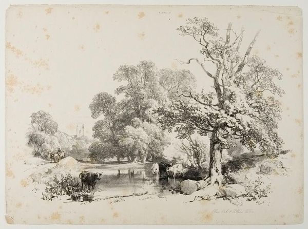 Editor: This is "Stepping Stones" by W. T. Green. It depicts a figure crossing a stream, all rendered in delicate strokes. What catches my eye is how the natural materials are presented. What do you see in this piece? Curator: I'm interested in the paper itself, the methods of its production, and its availability. How did the artist gain access to this material? Did they manufacture the paper themselves, or buy it? This reveals a lot about Green's economic status and social setting. Editor: That's a totally different approach! I hadn't considered the economic implications. Curator: Exactly! Consider how the mass production of paper influenced the accessibility of art to the masses, impacting both artistic production and consumption. Editor: It's interesting to think about art in terms of its production and accessibility. Thanks! Curator: Certainly. Thinking about art this way can open up new perspectives.