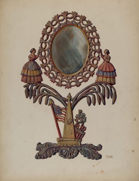 Dimensions: overall: 45.2 x 26.7 cm (17 13/16 x 10 1/2 in.) Original IAD Object: 61 1/2"high overall; 17 1/2 x 16"screen; 14"spread of legs.