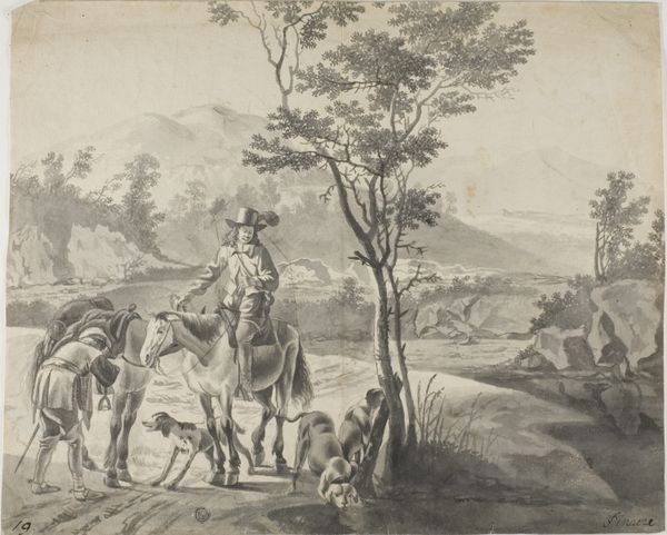 This etching, made by Pieter Bodding van Laer, depicts soldiers with a saddled horse. The horse, a recurring motif throughout art history, carries a wealth of symbolic meaning. In van Laer's time, the horse was a symbol of status, military power, and virility, echoing its earlier associations with classical heroes and gods, such as those seen in ancient Roman equestrian statues. Yet, the weary posture of this particular horse suggests another layer: the toils of war. One is reminded of the horses in battle scenes depicted in the Renaissance, or even much earlier, in the friezes of ancient Greece. The repetition of the horse across millennia speaks to our collective memory of it as both a noble beast and a symbol of burden. The psychological weight of the animal conveys the emotional and physical tolls of war, and connects us to an endless cycle of conflict and resilience.