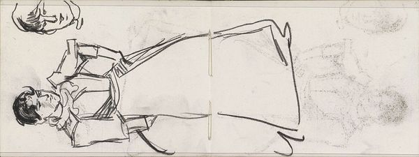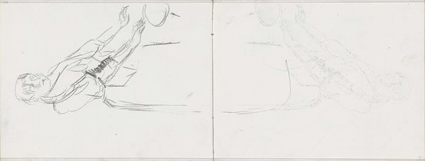 Curator: Welcome. We’re looking at Isaac Israels' “Studies van een staande vrouw met haar handen bij haar gezicht,” a drawing residing here at the Rijksmuseum. It's believed to have been created sometime between 1875 and 1934. Editor: My initial impression is one of captured fragility. The rapid, sketchy lines convey a sense of transience. It’s almost as if we’re glimpsing a fleeting moment of introspection or vulnerability. Curator: Precisely. Consider the materiality of pencil on paper – the immediacy it offers. The rough texture and broken lines are a departure from the highly rendered academic style, capturing a sense of fleeting movement and spontaneity that characterizes Impressionism. Editor: The recurring motif of the hands near the face… it’s loaded. Historically, that gesture often signifies pensiveness, grief, even concealed secrets. Do you think Israels uses it to signify something similar here, some interior emotionality? Curator: Possibly, but I see something different in the repetition across the sheet. The rapid lines emphasize the hand almost as an extension of her psychological landscape. What truly intrigues me is how Israels' style avoids the romantic narratives common to portraiture. There's an absence of overt emotional symbolism and we instead have a sequence of notations to contemplate. Editor: So, the lack of resolution, is in itself meaningful? I note, too, that in the different figures, that stance almost reads as protective—perhaps representing how women’s emotions are shaped by cultural expectations that necessitate concealment? Curator: A fascinating thought. By denying the viewer complete visual resolution, he disrupts any potential objectification. We’re left not with a concrete image of a woman but the echoes of a psychological idea. This focus is why Israels work stands out during this time. Editor: It truly is the emotional sketchiness, the suggestion of inner feelings, rather than definitive statement, that renders this work poignant. Curator: A testament to the power of the suggestive and unfinished!