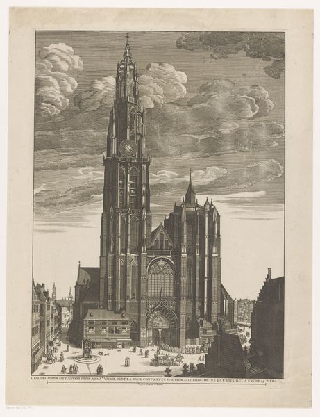 Joseph Hunin made this print of the Onze-Lieve-Vrouwekathedraal in Antwerp during the early 19th century. We see the gothic cathedral, not merely as a place of worship, but as a cultural and social institution, towering over the people and buildings that surround it. Hunin’s print offers a window into the ways that buildings can reinforce social hierarchies. Constructed over centuries, these gothic cathedrals weren't just about religious devotion; they were symbols of civic pride, economic power, and social order. The print itself is a product of its time, made when Europe's artistic institutions, like academies and museums, were developing the concept of 'art' as distinct from craft. Understanding the history of the printmaking and architecture involves delving into archives and libraries, and questioning the social dynamics that shaped both the cathedral and its representation.