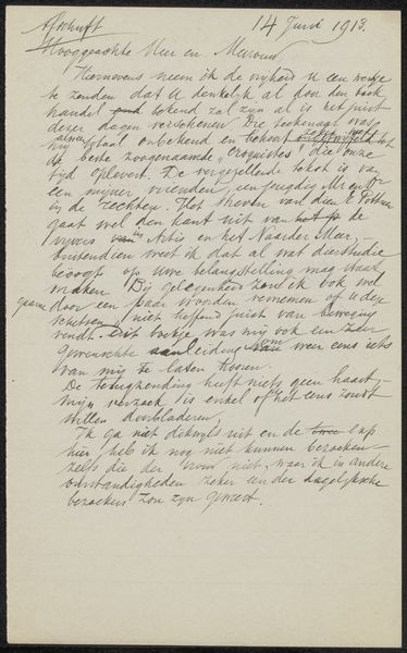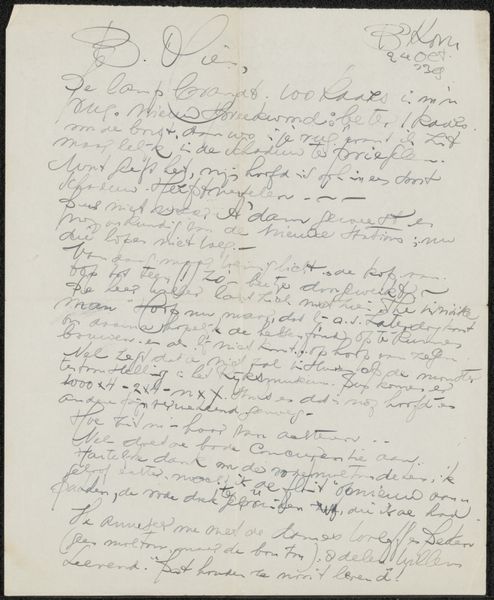 Editor: We're looking at "Conceptbrief aan Jan Veth en conceptbrief aan anoniem" – seemingly a draft or sketch of a letter by August Allebé, dated possibly 1918. It’s ink on paper, with a really fascinating, almost frenetic, calligraphic style. It feels very personal. What draws your attention to this particular piece? Curator: The intimacy you perceive is key. These aren't just letters; they’re artifacts of artistic dialogue. Allebé, a prominent figure in Amsterdam Impressionism, is here engaging in the social networks crucial to an artist’s career. We see a direct connection to Jan Veth, an influential critic. Editor: So, it's not just the aesthetic of the handwriting, but the act of correspondence that's important? Curator: Precisely. The act of writing and sending becomes a crucial means to negotiate artistic reputations. Consider the institutional landscape: museums, galleries, critics like Veth – all gatekeepers. Allebé, through this letter, is actively positioning himself within that network. How does this informal document relate to Allebé's public persona? Editor: That’s a good point. This gives us a glimpse into the behind-the-scenes maneuvering. The mention of catalogues… it makes me wonder about exhibition politics at the time. Curator: Exactly. Allebé wasn't just creating art in isolation; his work was entangled in a complex web of social relations and institutional power structures. Editor: It’s almost like a social media post of its time, right? A way to maintain connections and shape your public image? I never thought about it that way before. Curator: Absolutely! Examining these connections illuminates how art history is actively shaped through these networks, impacting not only individual careers but the public role of art itself. Editor: This has given me so much to think about! It’s fascinating how a simple letter can reveal so much about the art world's machinery. Curator: Indeed. By recognizing these behind-the-scenes interactions, we start to understand the politics embedded within the art we study.