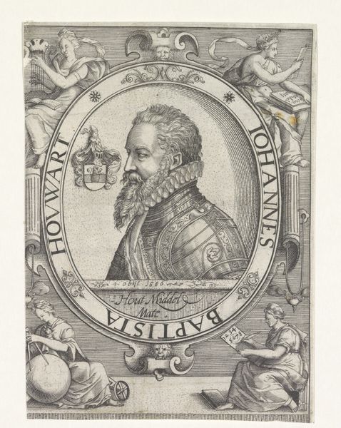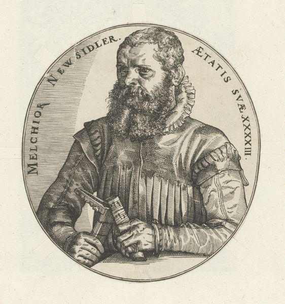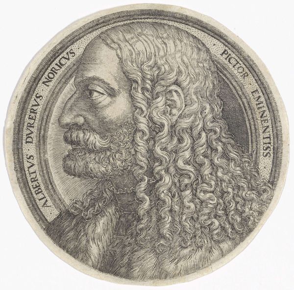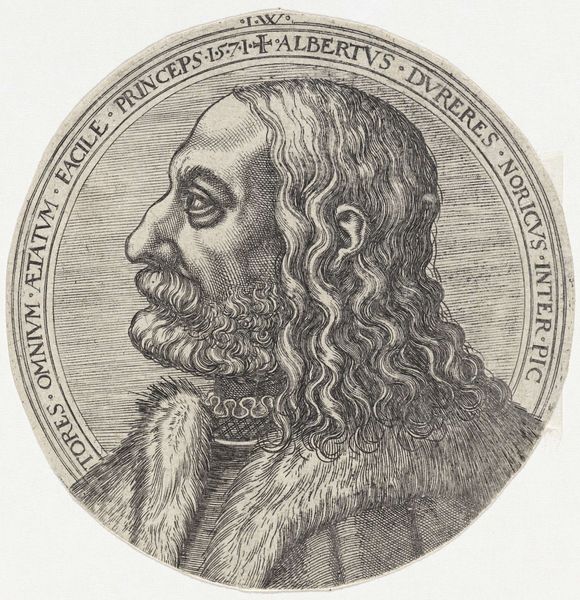 Curator: This is an obverse of a metal medal featuring Johann Frederich, Elector of Saxony. Created around 1532 by Matthes Gebel, it's a stunning example of Renaissance portraiture. Editor: Yes, this medal is impressive. The details, especially in the texture of his beard and the intricate design of his clothing, stand out. It makes me wonder about the process involved in creating something so precise in metal. What draws your eye when you look at this piece? Curator: My attention is immediately drawn to the meticulous execution of the relief. Notice how Gebel utilizes varying depths to create a sense of volume and to differentiate between the figure and the background. This use of depth enhances the contrast between light and shadow. Observe the lettering; the precision of its rendering contributes significantly to the overall impact. What is your reaction to it? Editor: It’s really interesting to notice how the varying depths create the image, almost like a drawing in metal. How do you think this relief affects the viewer's perception of Johann Frederich? Does the medium itself communicate anything about the subject? Curator: It is more than that; it directs how we read the composition. It controls light to manipulate contrast and thereby emphasize certain textures over others. Given its creation in metal, the choice of material lends Johann Frederich a sense of power and permanence, reflecting his status as Elector. The medium and its meticulous carving thus underscore his authority. Do you see that as well? Editor: I completely agree! The metal certainly adds a sense of importance, making the portrait feel very official and lasting. Thank you! Curator: The formal elements all work together to create that intended impact.