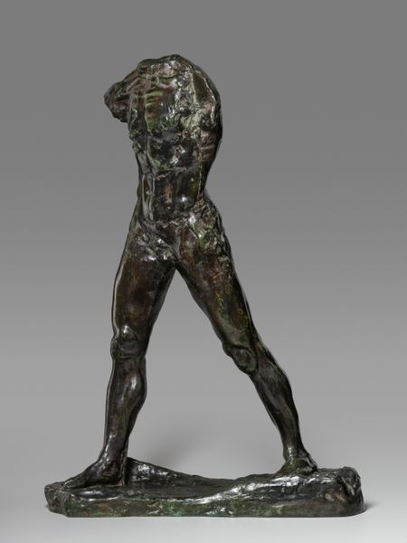 Editor: This is "Dancer Looking at the Sole of Her Right Foot" by Edgar Degas, likely created between 1890 and 1920. It's a bronze sculpture, and I'm struck by its dynamism, like she’s frozen mid-motion. What do you see in this piece? Curator: What I find compelling is how Degas, within the Impressionist movement, engaged with representations of women, particularly ballerinas. How might we analyze this bronze not just as an aesthetic object, but as a commentary on the physical demands and the gaze imposed on dancers during that period? Editor: That's a really interesting perspective! I hadn’t thought about it like that. So, it’s not just a beautiful sculpture, but it’s also revealing something about the pressures on dancers at the time? Curator: Precisely. Consider the contorted pose; she is both strong and vulnerable. How does this positioning speak to the performative aspects of ballet, where idealized beauty is often achieved through rigorous, even painful, training? The question then becomes: is Degas celebrating or critiquing this dynamic? Editor: It makes me think about how much is hidden from the audience, all the work and pain behind the graceful performance. Perhaps Degas is trying to reveal that hidden side. Curator: Yes, and from a feminist perspective, we might question the power dynamics at play: the male gaze, the objectification of the female body. What does it mean for a woman to constantly be on display, judged for her physical form? Editor: This really opens up a new way of understanding the sculpture. It’s more than just a pretty bronze; it's a complex statement about women, labor, and performance. Curator: Absolutely. By looking at it through the lens of social and feminist theory, we can begin to unravel these layers of meaning and gain a deeper appreciation for the complexities of Degas’s work. Editor: I’m going to be thinking about this piece in a whole new light now. Thank you!