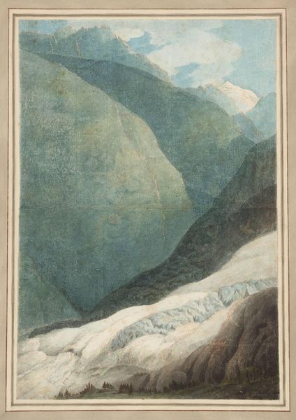 Curator: I’m struck by the sheer emptiness. It’s as if the landscape is swallowing you whole. Editor: Indeed. This is "Darial Gorge" by Ivan Konstantinovich Aivazovsky, created in 1891 using oil paint. It represents the Darial Gorge in the Caucasus Mountains, a site imbued with both strategic importance and cultural significance. Curator: You can almost feel the grit of the stone; those browns and beiges aren't romanticized at all. There’s a definite sense of geological heft—it makes me think about the labor required to traverse such a landscape. And what about the pigment choices here? Editor: Absolutely. The gorge served as a crucial passage throughout history, linking Russia with the southern Caucasus. Aivazovsky, deeply connected to Russian imperial expansion, frequently depicted sites of strategic value, blending topographic realism with romantic idealism. The location of the site itself holds great political symbolism regarding expansion and imperialism in Russia at the time. Curator: So the material realities of empire—the need for roads, forts, passage for armies—becomes, in his hands, this… overwhelming vista. Do you think those tiny figures are a romantic flourish or an important addition? Editor: They're essential to understanding the painting’s power dynamics. Those figures emphasize not only the scale of nature, a key aspect of Romanticism, but also humanity's tenuous grip on the landscape. It underscores the monumental labor demanded by empire-building, the sheer force required to dominate such a terrain. Curator: Thinking about Aivazovsky's body of work, I can't help but question whether he viewed the gorge and its inhabitants as materials, integral to the construction of a grander Russian narrative. What sort of labor do you imagine he underwent himself when creating this artwork? Editor: It’s hard to ignore Aivazovsky's close ties to the Imperial court, he enjoyed immense state patronage and he seems very committed to expressing a distinctly Russian view of the landscape in many of his other works, something that has had an influence on how history regards his pieces. Perhaps this explains the subdued tones we observe in the canvas. Curator: It seems Aivazovsky was more than just an artist capturing pretty scenes. This piece reveals that a painted landscape can be a potent carrier of power, even one shrouded in artistic conventions. Editor: Agreed. “Darial Gorge” reminds us how landscape art often operates as an assertion of control and claim, cloaked in beauty and romantic ideals. It offers much to contemplate.