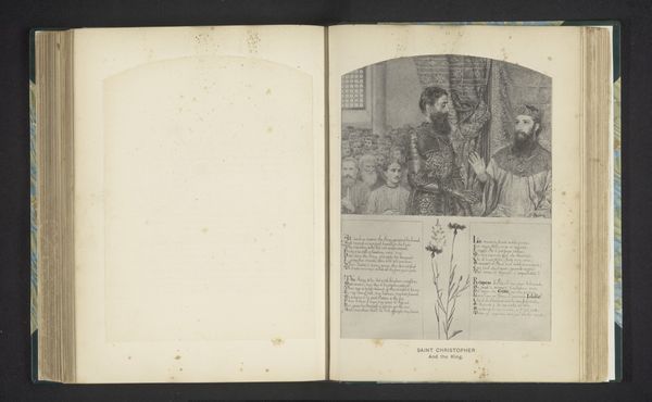 Frederick Hollyer created this print, "Going to Church," showcasing the textures and tones achievable through photogravure, a process admired for its ability to capture subtle gradations and fine details. The composition is structured around a young woman, set slightly off-center, creating a dynamic balance with the background elements of family, architecture and nature. The artist's use of light and shadow models the figures, giving them a sculptural presence against the flatter rendered background. The details invite us to consider the artwork's semiotic system, where elements like clothing, setting, and the hidden face at the window might signify aspects of social status, moral virtue, and unseen observers within the community. The linear perspective and tonal variations create a sense of depth but also destabilize a clear narrative. Is it a scene of piety, scrutiny, or both? This ambiguity reflects a broader discourse within Victorian art, questioning fixed social meanings and exploring themes of observation.