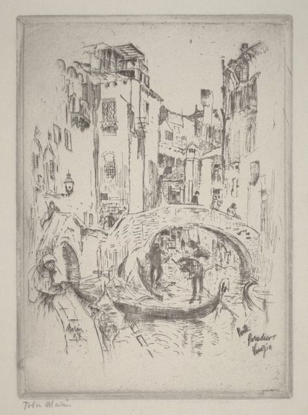 John Marin made this etching, "Window, Venice," with ink on paper, and it’s all about the dance of lines. It's like he's sketching with acid, letting the process itself dictate the image. What strikes me is how the light seems to vibrate off the surface. Marin doesn't give us solid shapes, but rather a collection of fleeting impressions. Look at the way he renders the figures on the steps, they’re barely there, like ghosts in the Venetian light. The ink isn’t precious, it’s immediate and raw. You can almost feel the artist’s hand moving across the plate, scratching and biting. There’s a looseness here that reminds me of Cy Twombly, that same sense of capturing a moment before it disappears. Like Twombly, Marin embraces chance and imperfection, reminding us that art is as much about the process as it is about the final product. It's a conversation, a back-and-forth between the artist, the medium, and the world itself.