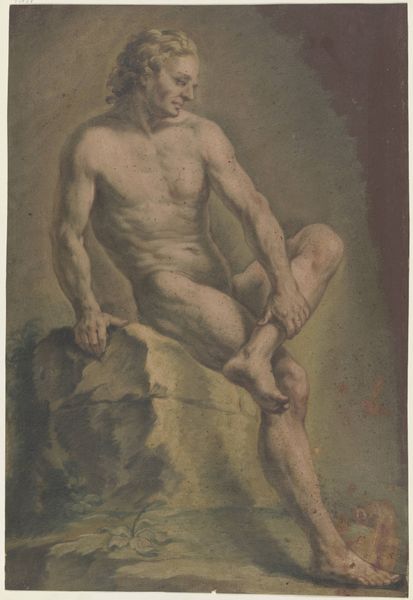 Alphonse Legros created this etching titled "Job, 1st plate," using fine lines to depict a biblical scene of suffering. The composition centers on Job, whose despondent figure is set against a stark stone wall, a visual metaphor perhaps for the inflexible nature of his plight. Legros masterfully employs line and shadow to convey texture and emotion. The cross-hatching creates a sense of depth, and the somber mood is enhanced through the use of chiaroscuro. The lines that define Job’s body, the folds of his garments, and the rough texture of the ground all suggest a world marked by decay and destitution. The choice of etching as a medium is particularly relevant, as it allows for a level of detail that reinforces the overall theme of human frailty against the backdrop of immutable structures. Note how the formal qualities of the etching—the linearity, the contrast, and the emphasis on texture—work together to evoke a profound sense of empathy and existential contemplation. The interpretation of the themes within this work remains dynamic, changing through continued examination.