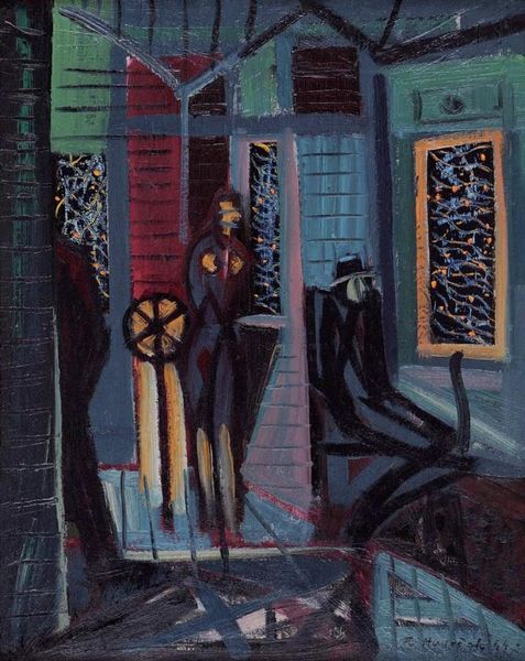 Curator: Welcome. We're looking at "Still Life," a painting from 1967 by Margit Selska, rendered with oil paint. What strikes you immediately? Editor: There’s a distinct tension, almost a melancholy here. The muted colors, combined with the somewhat roughly applied paint, create a sense of immediacy, but it also feels…strained. Curator: It’s interesting you pick up on the process so quickly. Look at the construction of the image itself. We have thick brushstrokes and, upon closer viewing, you notice the clear emphasis of the materiality and the layering of the oil paint. Consider her studio; how might the availability of specific pigments shaped this palette? What social conditions gave rise to such an image and texture? Editor: Absolutely, and in contrast to the application, let’s think about the sunflowers, the pine cones, and the vase, sitting atop the striped blanket. What meanings could they evoke within this still life tradition? The sunflowers have strong associations with warmth, the sun, life, and also loyalty. However, in conjunction with what I think is a striped towel—an emblem of domesticity and perhaps modesty—we are invited into a cultural symbolism beyond an image's material properties. Curator: The striped blanket also points to considerations of design and function in daily life, even perhaps referencing the means through which fabric-making could affect economies and homes, perhaps through international distribution, a common modernist approach. It begs the question: How does art mirror broader societal labor practices? Editor: That is true. Yet I believe the deeper narrative centers around the tension between decay, death and nature and culture, rebirth, even beauty, encapsulated within these recurring visual metaphors. The arrangement almost forms a tableau of emotional echoes, inviting us to contemplate the fragile balance within both ourselves and within the world. Curator: I appreciate you grounding us to emotional impact and symbolic representation here; the social relations certainly work in tandem. What, if anything, feels unresolved here? Editor: Perhaps the question becomes: what objects from our current daily landscape will, fifty years from now, be seen to communicate similar depth when rendered so personally? I am left wondering what remains, but more importantly, why it resonates.