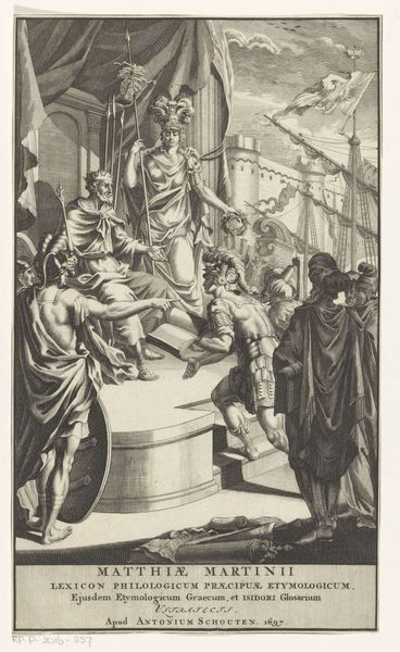 Robert van Audenaerde created this print, "Marriage of the Virgin," sometime between 1663 and 1743. The scene depicts the betrothal of Mary and Joseph, a key moment in Christian theology and a popular subject in art history. Audenaerde's image exists within a long history of representing women in marriage as symbols of purity and devotion, yet it also reflects the social and political context of his time. How does Mary's demure pose and downcast gaze speak to the expectations placed on women in 17th and 18th century European society? Notice the high priest officiating, and consider the power dynamics at play in this sacred union. The surrounding figures and the temple backdrop subtly emphasize the communal and religious significance of marriage. This print invites us to reflect on the historical and cultural constructs that shape our understanding of gender, religion, and relationships. It prompts us to question how traditional narratives can be both upheld and challenged through art.
