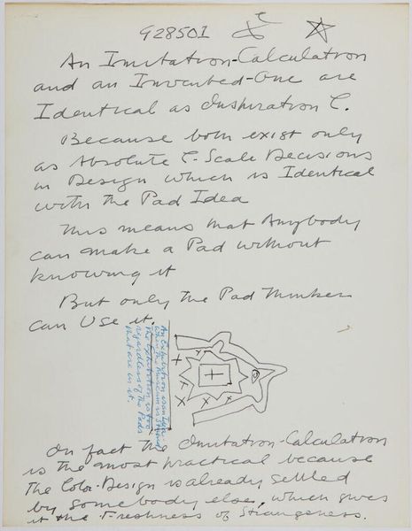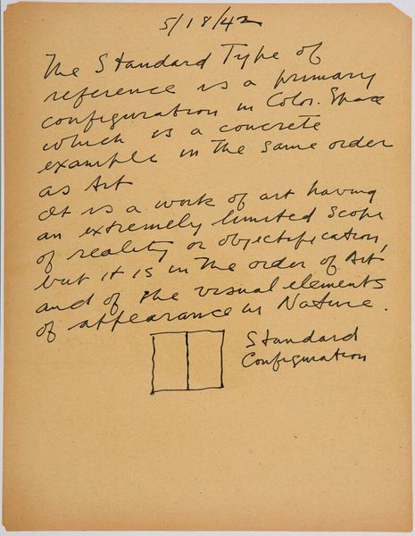 Editor: Here we have "Art Theory Text with Tone Diagrams" by Stuart Davis. It's a handwritten piece, and I'm struck by the way the different marks create varying tonal values, almost like a study in texture. What do you see in how Davis approaches these tonal relationships? Curator: The formal arrangement is quite interesting. Notice the meticulous use of line and the calculated variations in density. The contrast between the structured diagrams and the fluid text creates a visual tension that prompts us to consider the relationship between artistic theory and practice. Editor: So, it’s the deliberate placement and the interplay of these elements that give the work its meaning? Curator: Precisely. Davis seems to be exploring the very essence of visual language, inviting us to decode the fundamental building blocks of art. What is the significance of tone in art? Editor: I hadn’t considered it in such a structural way before, focusing on tone as a language of sorts. Curator: Indeed. The piece challenges our conventional understanding of art, urging us to appreciate the underlying principles of visual construction.