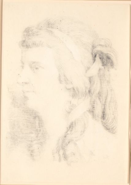 This is a study for a portrait of Margrethe Elisabeth Stampe by Jens Juel, likely made in the late 18th century using chalk on paper. The softness of the chalk medium lends itself beautifully to the delicate features of the sitter, capturing a sense of her gentle nature. The artist employed the chalk in subtle gradations, building up tone and form with layers of powdery pigment. The texture of the paper also plays a role, its slight toothiness providing a receptive surface for the chalk to adhere to, resulting in a slightly blurred effect that enhances the ethereal quality of the drawing. While seemingly simple, the process of creating such a study requires a mastery of draftsmanship and an intimate understanding of materials. Juel's skilled manipulation of chalk and paper reveals not only his technical ability but also his sensitivity to the character of his subject. By focusing on these elements of material and making, we gain a deeper appreciation for the artistry and skill involved in creating this evocative portrait study.