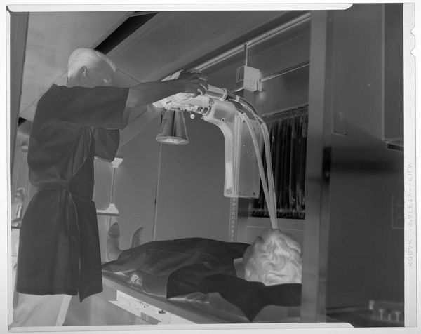 Editor: This photograph, taken by Martin Schweig, captures a bride walking up the steps of a church. The helpers carrying her train, the cars, and the architecture all suggest a mid-20th century setting. What strikes me is the stark contrast and how that affects the narrative. How do you interpret this work? Curator: The image invites us to consider the social context of the wedding itself. The material realities of the dress—its fabric, its construction, the labor involved in its creation—speak to a specific class and set of social expectations. Editor: So, you're saying the materiality highlights the social implications of the wedding? Curator: Precisely. The photograph, as a reproducible object itself, further democratizes this otherwise exclusive ritual, inviting wider consumption and interpretation. Editor: That's a perspective I hadn't considered. Thanks! Curator: It's fascinating to see how the material dimensions of an event reflect broader social structures.