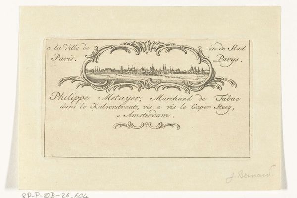 Editor: So, this is “Gedenkpenning op Hendrik Danielsz. Hooft, 1787” by an anonymous artist. It’s a print – ink on paper. What first strikes me is its almost mathematical feel; everything’s carefully arranged, circular. What catches your eye when you look at this, besides all that intriguing old Dutch text? Curator: You know, it’s fascinating how something so seemingly straightforward as a commemorative medal can be a portal to an entire era. Neoclassicism valued order, reason, and clarity, and this print really embodies that spirit. It’s interesting how the inscription itself becomes part of the visual experience. Editor: Absolutely! I’m curious about the text itself. Does the lettering style contribute anything to the overall feeling? Curator: Good question. The lettering style in these medallions does several things. The neat, precise font emphasizes the importance of language during the historical era. It really does highlight Neoclassicism as the typography has qualities from ancient Greek or Rome lettering which connects to that time periods art and politics. Editor: It sounds like it was more than just a simple portrait. It's cool how much you can read into just the typeface and composition of the overall artwork. Curator: Yes! It prompts us to reconsider the artistic and historical context through careful attention. I now perceive this to be quite more interesting now that you made the initial interpretation!