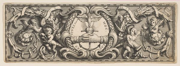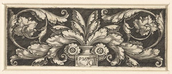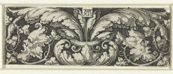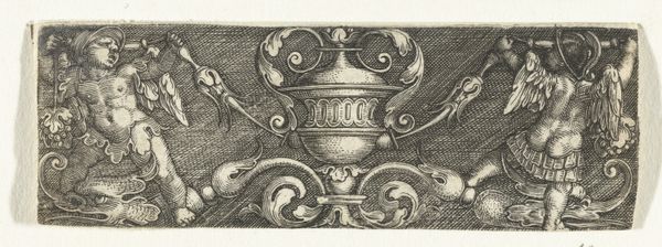 Heinrich Aldegrever created this ornamental frieze with engraving techniques, showcasing a vase amidst foliage. Observe how the vase motif, central to the composition, transcends mere decoration. Vessels are ancient symbols of containment, fertility, and transformation. Recall the amphorae of ancient Greece, repositories of wine and oil, or even the sacred chalices of religious rites. Note how the vase is entwined within acanthus leaves. This intertwining of vessel and nature reveals the cyclical, transformative power of artistic representation. This motif recurs throughout art history, from classical cornices to Renaissance frescoes. Such imagery speaks to a deep-seated human desire for order and beauty, a subconscious recognition of the life force inherent in nature. This work is a powerful testament to the enduring human impulse to weave narratives of renewal and continuity through symbolic forms.
