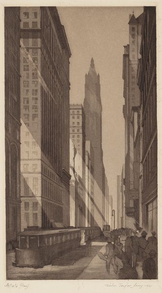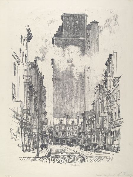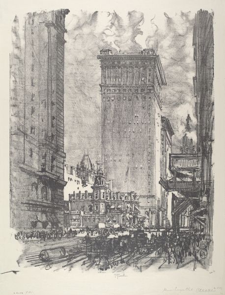Joseph Pennell made this etching called "Lodgings for Gents" sometime in his life, using a metal plate and acid. And what I see right away is the wild energy in the mark-making, like he was wrestling with the city itself. Look at how the lines build up the skyscraper, almost like a skeleton, unfinished, raw. You can feel the grit and the dust, the sheer labor of building something so massive. It’s not just a picture; it’s a record of process, a kind of performance captured on paper. The scratches in the sky almost feel like rain. Pennell had a love-hate relationship with New York, you know? He admired the ambition but was also critical of the cost. I love the tension in his work, a city in perpetual motion, always becoming. It reminds me a bit of Piranesi, the way he captures the grandeur and the melancholy of these monumental spaces. And it leaves me wondering, what does it mean to build, to create, to leave your mark on the world?