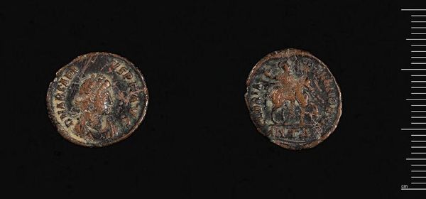 Curator: This coin, "Coin of Cotiaeum under Valerian," offers a glimpse into the reign of Valerian I. Editor: It feels weighty, doesn't it? All that history pressed into this small, tarnished disc. I see a worn portrait, a suggestion of imperial power, but also fragility. Curator: Coins were potent propaganda tools. This one likely circulated in Cotiaeum, modern-day Turkey, reflecting Rome's vast reach and complex relationship with its provinces. Consider how identity and authority were visually constructed. Editor: The symbols are interesting. I notice a deity or imperial figure perhaps? Their attributes could unlock narratives of power, divine right, and cultural memory—though the wear makes precise identification challenging. Curator: Precisely. This piece isn't just currency; it's a tangible link to a world of power dynamics and cultural exchange. Editor: Absolutely, seeing the traces of human touch and design across such time spans gives me chills.