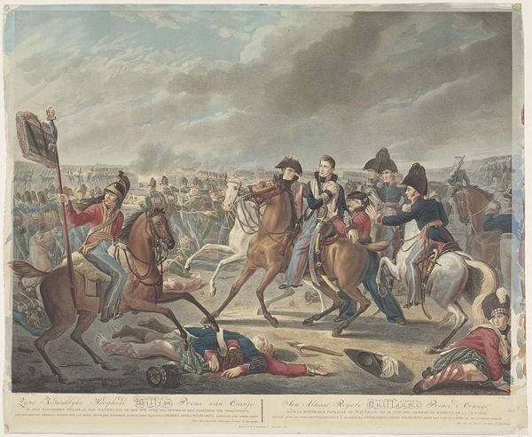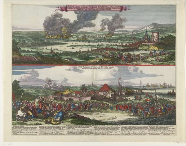 Jan van Huchtenburg’s engraving "Ruitergevecht in Noord-Italië," made around 1702-1703, immerses us in a swirling cavalry battle. Notice the frenetic energy conveyed through dense clusters of figures and the dynamic interplay of light and shadow. Huchtenburg masterfully uses line to create movement, with chaotic lines to build form and suggest the clash of armies across a broad landscape. The eye is drawn across the tumult by the horizon line, which is broken with the distant skyline of a small town. The composition functions on several levels. There is a classical tension between order and disorder, where an effort to depict a decisive event in military history is undermined by the depiction of chaos and loss. Engravings such as these were not merely illustrative but functioned as semiotic systems reflecting contemporary views on conflict and power. This work invites us to consider how historical events are not just recorded but actively constructed through visual media.