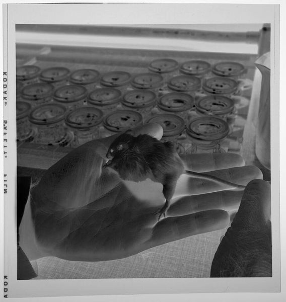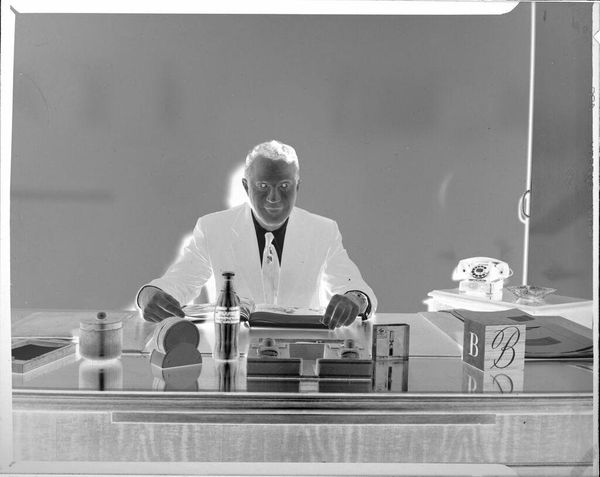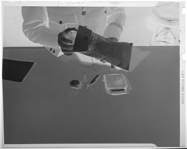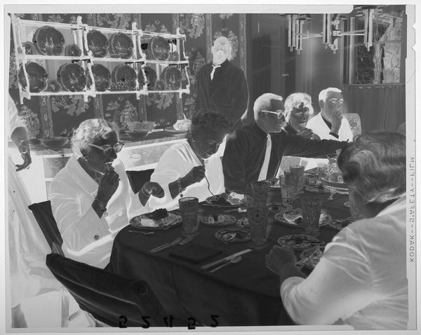 Curator: This photographic print, approximately 8 by 10 inches, is an untitled work by Harris & Ewing, and it features copy negatives depicting men manufacturing metal bars. The images, rendered in negative, present scenes from a metalworking facility. Editor: The high contrast creates a stark, almost alienating atmosphere. There’s something unsettling about seeing this industrial labor in negative space. It's like a ghostly record of industry, with the focus on manual labor. Curator: Yes, I think it highlights the physicality of the labor involved. We see the workers interacting directly with raw materials, pouring molten metal and carefully arranging the cooled bars. The materiality of metal production is brought to the fore. Editor: Absolutely, and it raises questions about the conditions these workers faced. The uniformity of their outfits and the repetitive nature of their tasks speak to the dehumanizing aspects of industrial work, even if unintentionally. Curator: It reminds us of the collaborative processes, the division of labor, and the social systems that are a part of art and industry. Editor: The negative image almost inverts our understanding of progress, forcing us to consider the human cost behind material production. Curator: A somber yet crucial perspective, emphasizing the value of reflecting on the processes and histories behind these images. Editor: Indeed, it encourages us to think critically about the narratives we construct around labor and materiality.