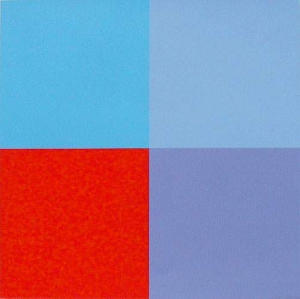 Richard Paul Lohse created *Vier verschränkte Farbgruppen mit blau grünen Akzenten*, or Four Interlocking Color Groups with Blue-Green Accents, using oil on canvas. The painting immediately strikes you with its ordered arrangement of rectangular blocks in harmonious yellows, whites, and blues. The composition is structured yet dynamic, inviting the eye to explore its grid-like layout. Lohse’s exploration of color and form is deeply rooted in his commitment to Concrete Art, emphasizing pure abstraction. The geometric structure and the considered palette aren't merely decorative; they reflect Lohse’s utopian vision of art as a model for social harmony. Each color and shape is carefully placed to create a sense of balance, embodying principles of structuralism. The interlocked shapes suggest an underlying order, where relationships between elements are key to the overall effect. These shapes function as signs within a structured visual language. The painting invites viewers to find their own meaning within its structured forms.