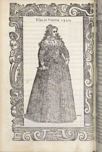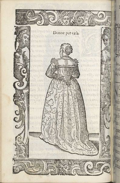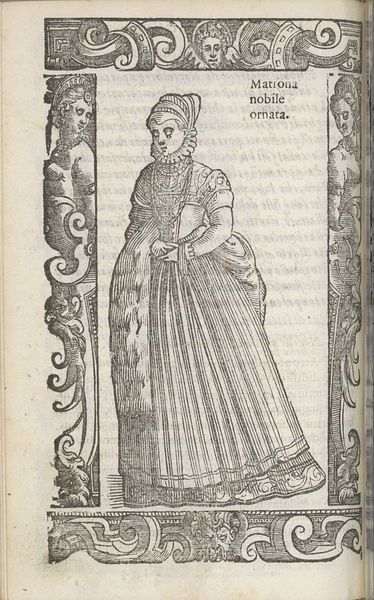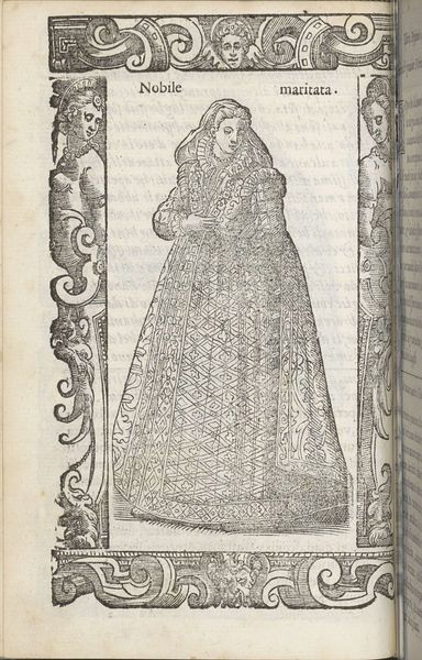 This engraving of a "Toscaanse ongetrouwde adellijke jonge vrouw", or Tuscan unmarried noble young woman, was made by Christoph Krieger using the subtractive process of carving lines into a metal plate. The material qualities of the metal, and the tools used to incise it, result in a graphic quality markedly different than a drawing or painting. Notice the crisp edges and regular patterns that define the woman’s dress. These lines are not just descriptive; they are evidence of the labor involved in the production of this image. Each stroke represents a deliberate action by the artist, a careful removal of material to create the desired effect. Engravings like this one were often made for printed books, circulating ideas and images widely, contributing to the standardization of fashion and the spread of cultural norms. By understanding the materials and processes behind this artwork, we can better appreciate its role in shaping social values. It is a reminder that even seemingly straightforward images are the result of skilled work, embedded in networks of labor, politics, and consumption.