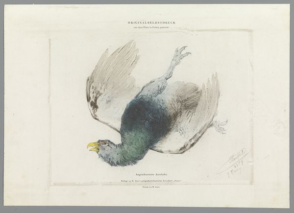Editor: So, this is "Fazant," a watercolor by Frans Everbag, created sometime between 1887 and 1931. It feels very delicate and precise. What strikes you most about the symbolism or imagery in this work? Curator: Immediately, the suspended animation speaks volumes. Consider the pheasant itself: often a symbol of vanity or, paradoxically, caution. But here, it's caught in a moment of quiet contemplation. What’s being reflected here is less about the bird and more about human anxieties and observation, wouldn’t you say? Editor: I hadn't thought about it that way, actually. I was focused on the almost photographic realism in the rendering of the feathers. The fact that the piece feels modern while portraying something traditional—how does that contrast play out for you? Curator: The tension between realism and the suggestion of narrative—the suspended moment—echoes ancient ideas. The pheasant is consuming. We, the audience, are watching and absorbing. Can the roles be reversed? We, becoming food for its awareness. It carries many potential interpretations, as intended for its age. Does this reading resonate with you? Editor: It does! Especially how the symbolism changes with the viewer's perspective and, therefore, shifts across generations. Thanks! Curator: My pleasure. This piece seems timeless yet firmly rooted in our collective memory of nature's quiet observations, something very welcome in these trying modern times.