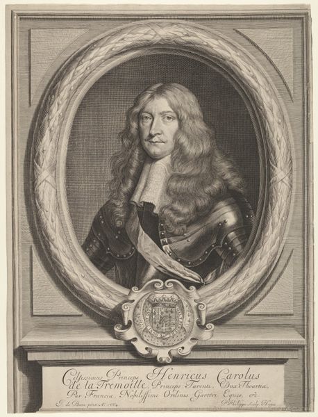 Robert Nanteuil’s portrait of Godefroi-Maurice, Duc de Bouillon, presents us with a fascinating interplay of power and vulnerability. Notice how the armor, a classical symbol of strength and authority, encases the Duke, yet his face, framed by soft, flowing hair, exudes a youthful, almost melancholic air. This juxtaposition is not accidental; it speaks to the complex nature of leadership. Think back to ancient Roman portraiture, where emperors were often depicted in military garb to convey dominance, but with carefully sculpted features that hinted at wisdom and humanity. Consider the elaborate coat of arms beneath the portrait; a heraldic device meant to declare lineage and status. This is a visual echo of the dynastic ambitions seen throughout European history. These symbols resurface time and again, each time adapting to new political and social landscapes. Here, the Duke seems to be conscious of the weight of expectation placed upon him, a burden carried across generations.