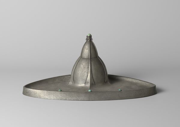 Editor: This is a metal diadem for a shako, a military headdress, from around 1828, used by the Koninklijke Mariniers, the Dutch Royal Marines. It has a very simple, almost austere design, with a large number '5' prominently displayed. What can you tell me about its cultural significance? Curator: This object, while seemingly straightforward, speaks volumes about the construction of identity and power during that era. The Royal Marines, like any military force, functioned within a very specific social and political landscape. This diadem, a component of the uniform, visually reinforces a sense of belonging and hierarchy, literally placing individuals within a system. Consider the symbolism inherent in a military uniform: How does it both unite individuals under a common banner, and simultaneously erase their individual identities? Editor: So, the number '5', then, represents not just an individual marine, but membership within a larger unit? Curator: Exactly. But it’s deeper than just unit identification. Think about the role of the military at that time. The early 19th century saw significant political upheaval. The military was often deployed to quell dissent and maintain order. This diadem, therefore, becomes a symbol of state authority, a visual representation of control and potentially, oppression. How might this simple object be interpreted by someone who experienced the sharp end of that military power? Editor: I guess what I see as an object of decorative art could represent the face of political and social power to someone else. Curator: Precisely. The beauty of studying art history, particularly through objects like these, lies in its ability to facilitate a dialogue about power, privilege, and perspective. Editor: It's amazing to consider that such a simple item embodies complex issues like identity and social control. Curator: Indeed. By understanding the historical and social context, we can unravel narratives embedded within objects.
