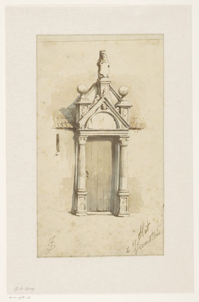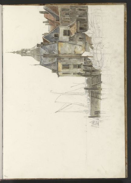 Editor: Here we have Johannes Bosboom’s "Studie van de bovenste verdieping van een hoekhuis," which translates to "Study of the Upper Floor of a Corner House," created sometime between 1827 and 1891. It’s a watercolor painting, currently residing here at the Rijksmuseum. I'm struck by how ordinary the subject matter is, yet Bosboom captures it with such delicate light. What do you make of its place within the broader context of Dutch art? Curator: Well, it’s important to remember the Dutch Golden Age obsession with representing daily life. While that period had passed by Bosboom's time, its influence certainly hadn't. Genre paintings, cityscapes like this – they spoke to a burgeoning middle class eager to see their world reflected in art. The choice to focus on the upper story also presents an interesting viewpoint. Is this accessible, or are we meant to feel like we're looking at it from a removed perspective? Editor: That’s interesting, the idea of a removed perspective. It feels almost like a fleeting glimpse rather than a formal portrait of architecture. I wonder how its location, now displayed in a museum, has altered its reception? Curator: Museums play a huge role in legitimizing certain types of imagery. This simple study, initially perhaps intended as a preparatory work, gains a certain prestige and significance once it's placed within the hallowed halls of a national museum like the Rijksmuseum. We start to view it not just as a depiction of a building, but as a window into the past, a commentary on urban life. Consider the watercolor medium itself. Is it valued less or more when placed next to a 17th century oil painting depicting very similar places or settings? Editor: That’s such a valuable point about how museums elevate and re-contextualize art. It definitely makes me reconsider how I initially viewed this piece! Curator: Indeed. And I appreciate you pointing out the impact of its delicate light - this helps us think about this image's importance in a post-impressionist world where light dominates subjecthood and perception. I’ll certainly be thinking about the power of display and observation differently now!