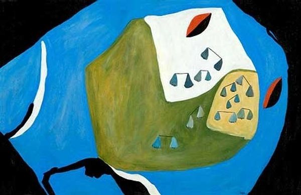 Curator: This “Untitled” work by Álvaro Lapa is a fascinating example of abstract Pop art. The acrylic paint creates a textured, almost graphic surface. What do you make of it at first glance? Editor: There’s a tension, almost an unsettling rawness, created by the stark contrast of colors and the visible brushstrokes. It’s like the building blocks of something recognizable are present, but never quite resolve. Curator: Indeed. The interplay of geometric forms, such as the bold squares of deep blue against the white background, establish a visual dynamism. Consider also the assertive lines that create both structure and fragmentation. Editor: I’m intrigued by that tension between intention and chance – how the materials, particularly the viscosity of the acrylic and the broad application of the paint, resist perfect control. This seems less about polished execution, and more about the physical act of mark-making. Curator: The artist's selection of color amplifies this idea. The blue provides visual anchor points, but is immediately countered by warm reds, introducing layers of visual contrast. The stark black works similarly, further articulating a certain kind of angularity. Editor: I agree. And looking at the edges where the paint meets, you can almost feel the hand of the artist working with the medium, pushing it, layering it. It’s less a picture and more a record of its own making, an almost rebellious declaration against formal perfection. Curator: Precisely! Its rawness speaks volumes about challenging established traditions. Its engagement with form, its strategic, almost codified compositional organization gives the image clarity of purpose. Editor: It makes you question value judgments—where do we draw the line between deliberate construction and a seemingly unfinished work? Lapa’s art seems to thrive in the space in between. Curator: An art indeed about both definition and leaving open questions, not answers. Editor: Definitely! Thank you for offering deeper consideration into this important piece!