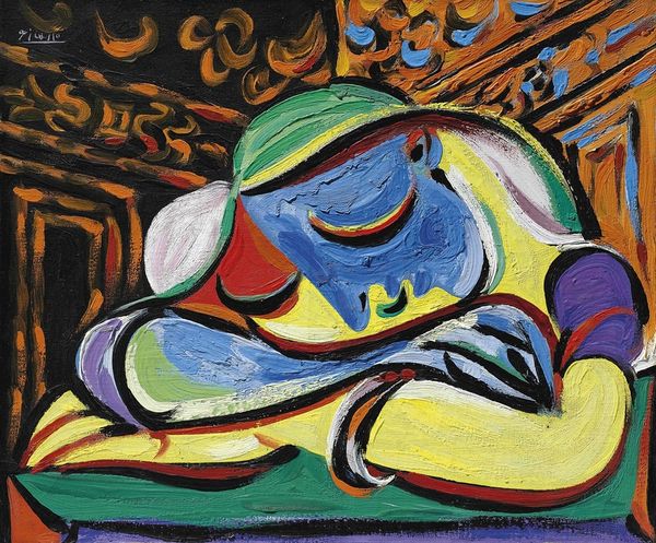 Editor: Here we have Picasso’s "Motherhood," painted in 1901. It's an oil on canvas work. I'm immediately struck by the colors—this cool palette of blues and yellows is far from what I usually associate with mother-and-child imagery. It feels a bit melancholic, almost ghostly. How do you interpret this work? Curator: Well, aren’t you perceptive? It *is* haunting, isn't it? Consider this wasn’t sunny, post-war suburbia. 1901, his blue period was just starting… This wasn't just some technical display, but a felt need to talk about hardship, about his friends dying around him of tuberculosis. The chill we see on that canvas – I swear, it still whispers of hospital corners. What about the Fauvist colors here; did you catch that tension? I’m curious about why this palette, so connected with pleasure and happiness, makes you think "ghostly." Editor: Yes! It’s that strange contrast of a traditionally warm theme – motherhood – rendered in such cold tones. The Fauvist colours amplify this dissonance, rather than softening it. So you're saying the 'ghostly' feeling is linked to a deeper understanding of his Blue Period? It’s the social commentary leaking into the tenderness? Curator: Precisely! That tension, that dissonance, *that's* where the real beauty lies for me. It acknowledges that even love can be shadowed by hardship. And with a title like "Motherhood," we have to remember the other mothers that the historical narrative too easily forgets, huh? The ones struggling, the grieving, the ones history paints out! Editor: I hadn’t really considered that – the absent mothers. Wow, that reframes the piece so much for me. Curator: It's amazing, right? A painting that seems to offer a nurturing symbol is speaking volumes more if we actually listen. A heartbreaking tenderness and not simple one at all.