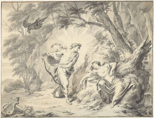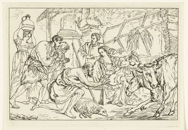 Editor: This is William Sharp's "King Lear: Act III, Scene 4," housed at the Harvard Art Museums. It's a dramatic scene, full of raw emotion. What historical and social context do you see informing this work? Curator: This piece allows us to consider power dynamics within 18th-century interpretations of Shakespeare. How are the figures of madness and royalty portrayed, and what does this tell us about the period's understanding of social order and individual agency? Editor: That's fascinating! It really makes you think about how societal structures can be both reinforced and challenged through art. Curator: Exactly. By looking at depictions of vulnerability and authority, we can unpack the complex interplay of identity, class, and mental health within the historical context.